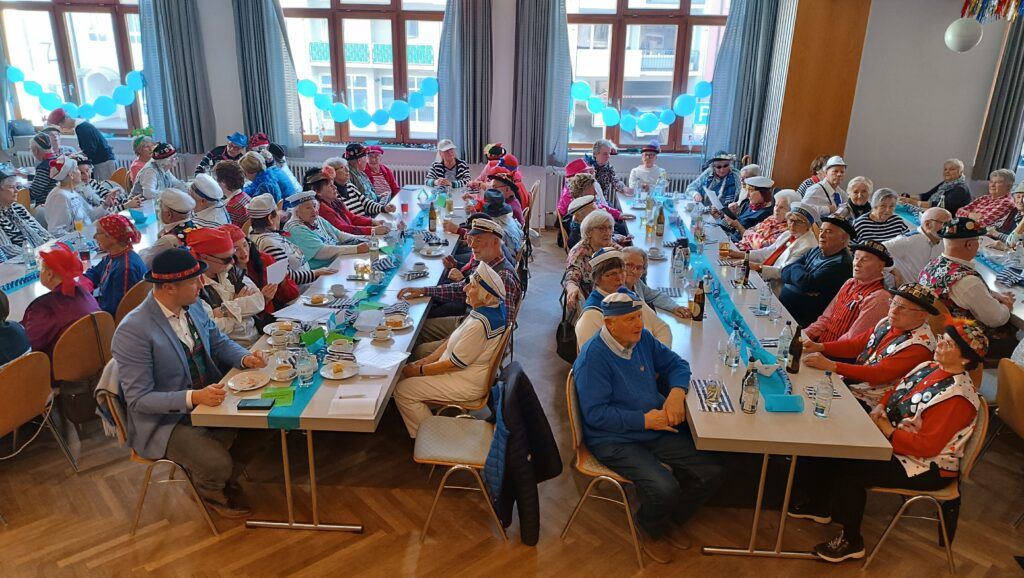 Bad Waldsee – Schon gut eine Stunde vor Beginn der Seniorenfasnet gab es am Mittwoch (31.1.) einen Ansturm auf die besten Plätze im Katholischen Gemeindehaus Bad Waldsee. Eingeladen dazu hatte wie in den Vorjahren der „Offene Seniorentreff“, eine Einrichtung beider Kirchengemeinden. Unter dem Motto „Kreuzfahrt in die Glückseligkeit“ hieß es für die vielen Ü-60-Besucher: „Willkommen an Bord der MS Waldsee“. Uschi Hirsch und Claudia Frick als Kapitänsduo verstanden es bestens, über drei Stunden lang einfallsreiche Fasnets-Stimmung zu präsentieren.