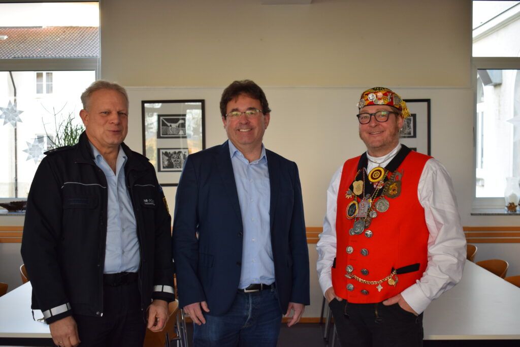 Aulendorf – Der Zunftmeister der Aulendorfer Narren, Florian Angele, und Michael Stöckler vom Polizeiposten Altshausen, besuchten am 23. Januar das Studienkolleg St. Johann, um in den Klassen der Mittel-und Oberstufe auf Gefahren bei Großveranstaltungen während der Fasnet hinzuweisen und Tipps für die Sicherheit zu geben.