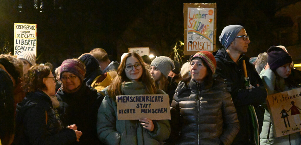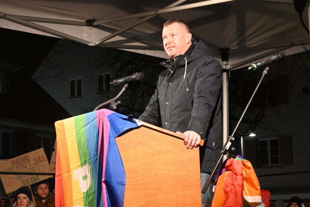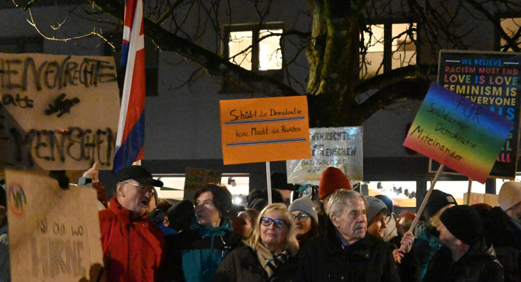 Bad Waldsee – Seit das Recherche-Netzwerk Correctiv die Geheimpläne hochrangiger AfD-Politiker, Neo-Nazis und finanzstarker Unternehmer zur Vertreibung von Millionen von Menschen aus Deutschland aufdeckte, ist etwas passiert in diesem Land. Plötzlich sehen die 70 %, die „stille“ Mehrheit in Deutschland, dass sie ihre Demokratie verteidigen müssen, wenn sie weiterhin eine freie, offene Gesellschaft haben wollen. So auch am gestrigen Freitag (26.1.) in Bad Waldsee, als sich, nach Angaben der Veranstalter, gut 1000 Menschen auf der Hochstatt zu einer Demo gegen Rechts trafen.