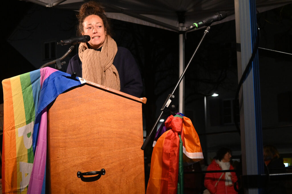 Egal, von welchem Spektrum die Redner kommen, was alle eint, ist der Schock über den Plan, Millionen von Menschen aus Deutschland zu vertreiben. Elena Parwan, erste Rednerin und Moderatorin der Demo, war sichtlich beeindruckt über die Menschenmenge, die sich auf der Hochstatt versammelt hatte und viele Protestplakate in die Höhe hielt. „Ich stehe hier für eine Gesellschaft, in der Menschen keine Angst haben müssen“, rief sie der Menge zu.