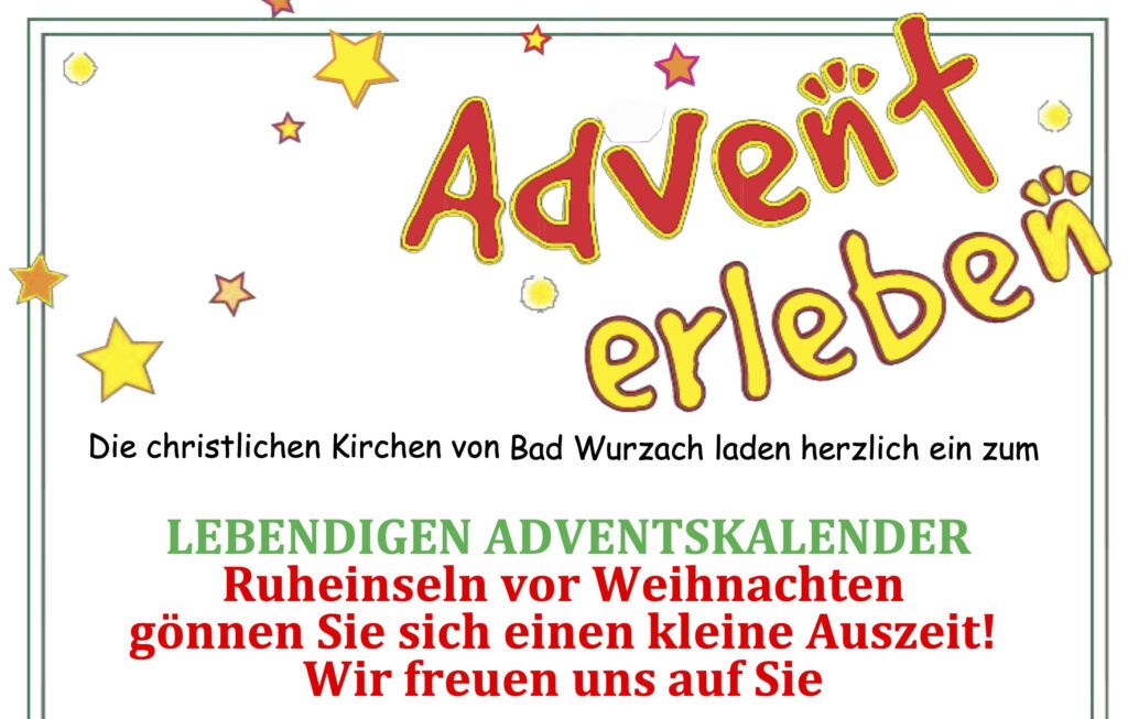 Bad Wurzach – Ruheinseln in der Hektik vor Weihnachten sind notwendig. Gönnen Sie sich einen kleine Auszeit! An den Montagen und Freitagen bieten die christlichen Gemeinden in Bad Wurzach Auszeiten an. Wir freuen uns auf Sie! Nachstehend sind die Orte und Anbieter genannt: