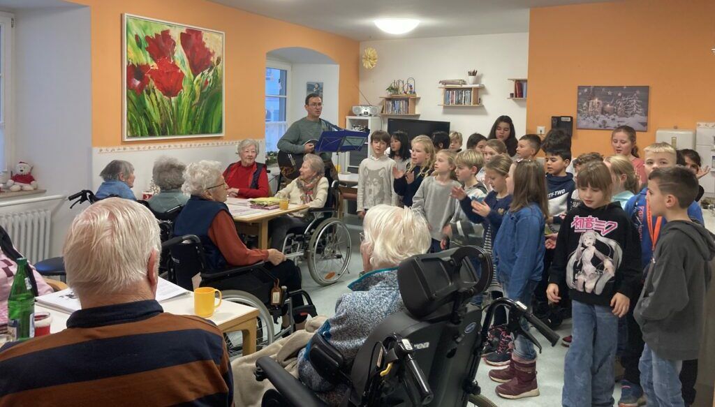 Bad Waldsee – Die Klasse 3a der Döchtbühlschule besuchte zur Weihnachtszeit das Spital in Bad Waldsee. In drei verschiedenen Wohngruppen gaben die 26 Kinder mit ihrem Lehrer Stefan Betz ein buntes und auch besinnliches musikalisches Repertoire zum besten.