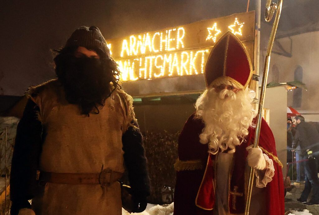 Arnach – Das bisschen Regen konnte die Freude nicht trüben. Auf dem ganzen Dorfplatz standen Wärmeöfen, mit Stehtischen kombiniert. Kinder spielten auf Schneebergen, Eltern nutzten die Gelegenheit zum Kauf eines Christbaums. Der Chor des Bildungshauses sang fröhliche Lieder, die Jungmusikanten intonierten adventliche Weisen. Unser Reporter Hans Reichert war dabei und hat etliche Eindrücke und Bilder vom Arnacher Adventsmarkt heimgebracht.
