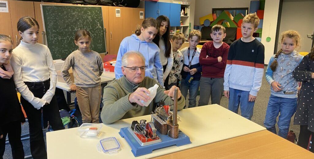 Bad Waldsee – Letzte Woche führte Michael Groh von der Thüga mit allen vierten Klassen einen zweistündigen Workshop zum Thema „Energie“ durch. Ganz praktisch mussten die Kinder zuerst einmal Hampelmänner machen, um bewusst menschliche Energie zu erleben.