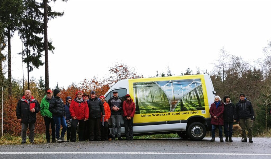 Humberg / Haisterkirch (rei) – Die Bad Wurzacher Landschaftsschützer werden nicht müde, auf die drohende „Umspargelung“ des Wurzacher Riedes durch bis zu 300 Meter hohe Windkraftanlagen (WKA) hinzuweisen. Am Sonntag, 19. November, hat eine Gruppe den Hummelluckenwald bei Humberg durchwandert, in dem der Projektierer Laoco GmbH (Kirchdorf / Iller) drei WKA errichten möchte. Und am Samstag, 18. November, haben sie an der Gemeindehalle in Haisterkirch, wo der Musikverein Haisterkirch sein Jahreskonzert spielte, Flugblätter verteilt.