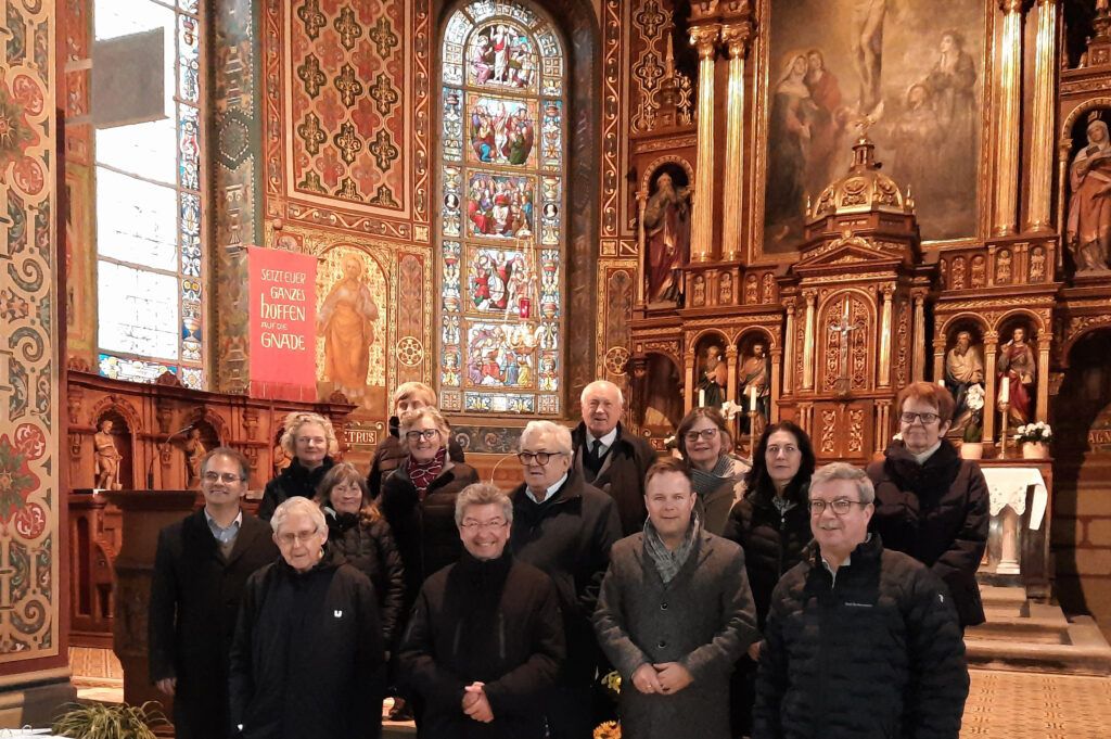 Wuchzenhofen – Besonderer Besuch in der Kirche St. Johannes Baptist Wuchzenhofen am Dienstag, 14. November: Der Altlandrat war gekommen, ein ehemaliger Dekan, ein amtierender Dekan, ein pensionierter Archivdirektor und Buchautor, der designierte Sparkassen-Chef, die Leiterin der Museen der hessischen Schlösserverwaltung, der Leiter des Kreiskulturamtes, die örtliche Kirchenpflegerin und … Es war der Verein zur Erhaltung sakralen Kulturguts e. V., kurz, „der Heiligenverein“, der in der Pfarrkirche zusammengekommen war, um sich von der Starkenhofer Architektin Cornelia Welte erklären zu lassen, wie die „sehr wertvolle Glasmalerei“ vor allem der Chorfenster von 1895 jetzt renoviert worden ist – wozu der einst von Landrat Dr. Blaser gegründete „Heiligenverein“ seinen Obolus beigetragen hat.