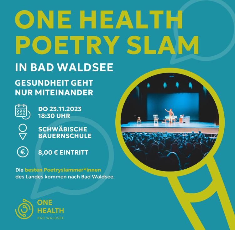 Bad Waldsee – Das Projekt One Health Bad Waldsee zeigte in den letzten Wochen über das selbstentwickelte Angebot „Mystery-Game im Ried“, dass viele Bürger:innen in und um Bad Waldsee an neuen Formaten und Aktionen interessiert sind und aktiv mitmachen. Am Donnerstag, 23. November, ab 18.30 Uhr findet ein weiteres anderes Event über das Projekt in der schwäbischen Bauernschule statt. One Health Bad Waldsee heißt sie herzlich willkommen zu einer Poetry-Slam Veranstaltung.