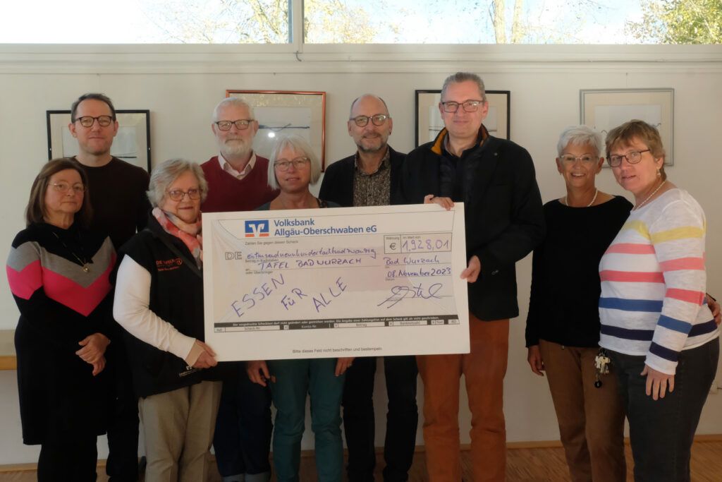 Bad Wurzach – „Essen für alle“ ist eine ökumenische Aktion der evangelischen und katholischen Kirchengemeinden gemeinsam mit der Verallia Deutschland AG, die zu Beginn des Ukraine-Krieges ins Leben gerufen worden war. Die damit gesammelten Spenden belaufen sich inzwischen auf 1.928,01 €, die nun in einem feierlichen Akt im evangelischen Gemeindezentrum dem Tafelladen zur Verfügung gestellt wurden.