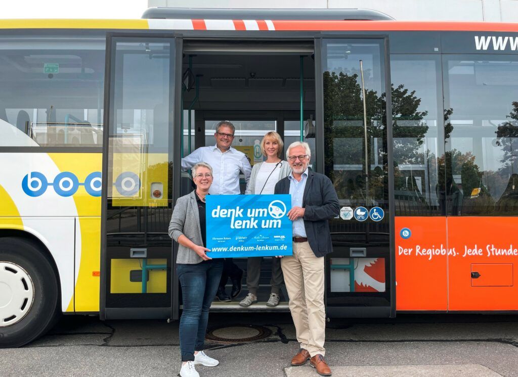 „Wir vier sind alle Familienunternehmer mit langer Tradition und möchten im Sinne unserer Fahrgäste den Nahverkehr verantwortungsvoll und zukunftsfähig gestalten“, sagt Bernd Grabherr. Deshalb habe man sich entschieden, gemeinsam um Personal zu werben. Auf der Internetseite www.denkum-lenkum.de wird in kurzen Filmen gezeigt, wie die Arbeit am Steuer eines Busses aussehen kann. Direkt gelangt man von dort auch zu den freien Stellen bei den einzelnen Unternehmen. Mit Broschüren und auffälligen Botschaften, etwa auf den Fahrzeugen, wird ebenfalls auf die Aktion aufmerksam gemacht. Ziel ist es, dass die Menschen die Perspektive wechseln und den Beruf mit anderen Augen betrachten. „Ob Interessierte sich als Quereinsteiger beruflich neu orientieren möchten, als Naturfreund einen Beitrag zur umweltfreundlichen Mobilität leisten wollen oder als Familienmensch den vertrauten Umgang im Betrieb schätzen – als Busfahrer und Busfahrerin lässt sich das erreichen“, betont Busunternehmer Mario Sohler. Ute Ehrmann und Elke Müller ergänzen: „Unter dem Motto Frauenpower möchten wir ganz gezielt zeigen, dass der Beruf auch für Frauen, die gerne Großes bewegen, seine Vorzüge hat. Die Arbeitszeiten sind flexibel und familienfreundlich gestaltbar.“ Und beide wissen genau, wovon sie sprechen: Sie leiten nicht nur ihre Busunternehmen, sondern sitzen regelmäßig selbst am Steuer.