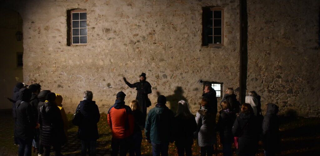 Leutkirch – Ein Feuer lodert im Hof hinter dem Gotischen Haus. Stadtführer Stephan Wandinger erwartet hier, im Kostüm von Jack the Ripper, seine Gäste zur nächtlichen Stunde. Im Feuerschein treffen immer mehr Interessierte ein, denn die Nachfrage für diese Halloween-Führung war groß.