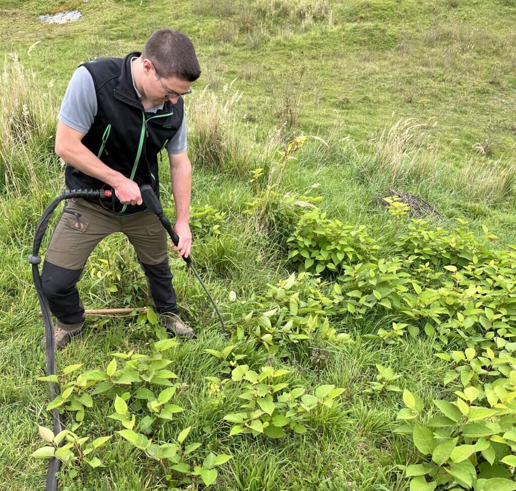Bad Waldsee – Am Montag, 9. Oktober, organisierte das städtische Forstrevier eine beeindruckende Vorführung zur Bekämpfung des Staudenknöterichs in der Kiesgrube Hittelkofen.
