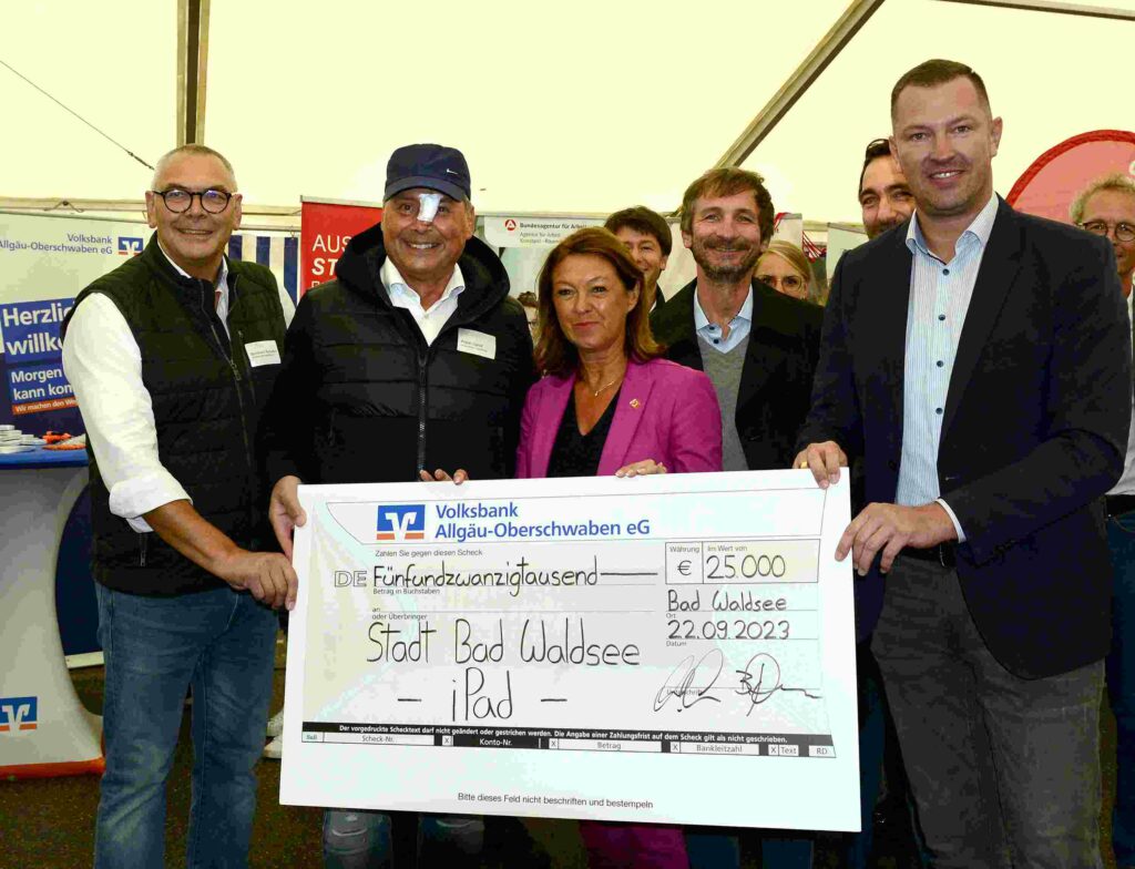 Bad Waldsee – Die Realschule Bad Waldsee freut sich über die großzügige Spende der Bildungsstiftung Bad Waldsee, die dazu beitragen wird, das innovative iPad-Klassen-Projekt weiter voranzutreiben. Der Scheck in Höhe von 25.000 Euro wurde im Rahmen der Eröffnung der Bildungsmesse überreicht.