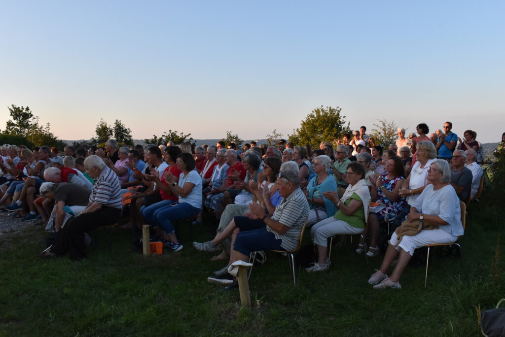 TAUTENHOFEN – An dem wunderbar sonnigen und warmen Sonntagabend zog es viele Gläubige zum wahrlich angesagten Gottesdienst mit dem jungen Pfarrer Wolfgang Metz aus Heggelbach, und mit musikalischer Umrahmung der Sing- und Musikgruppe Amicitia, die seit mehr als 20 Jahren in der Region bestens bekannt für kirchliche und spirituelle Lieder ist. Die neue Besetzung mit Sängerin Sofia war ebenso erfrischend, wie die lockere Gestaltung der Heiligen Messe unter Gottes freiem Himmel. Pfarrer Wolfgang Metz hatte zur Feier des Abends auch Verstärkung mitgebracht, Generalvikar Hubert Lenz aus Feldkirch sowie Vikar Mathias Bitsche, mit denen zusammen er die Messe hielt.