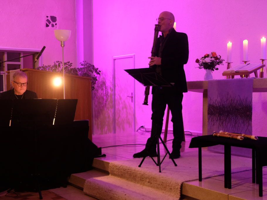 Bad Wurzach – Die Zuhörer, die in der evangelischen Kirche in Bad Wurzach der Musik von Hans-Jürgen Hufeisen (diverse Block-Flöten) und Oskar Göpfert (Klavier) lauschten, bekamen nicht nur wunderbar entspannende Musik geboten, nein, Hufeisen überraschte sie auch mit einer wunderbar tiefgründigen Weihnachtsgeschichte.