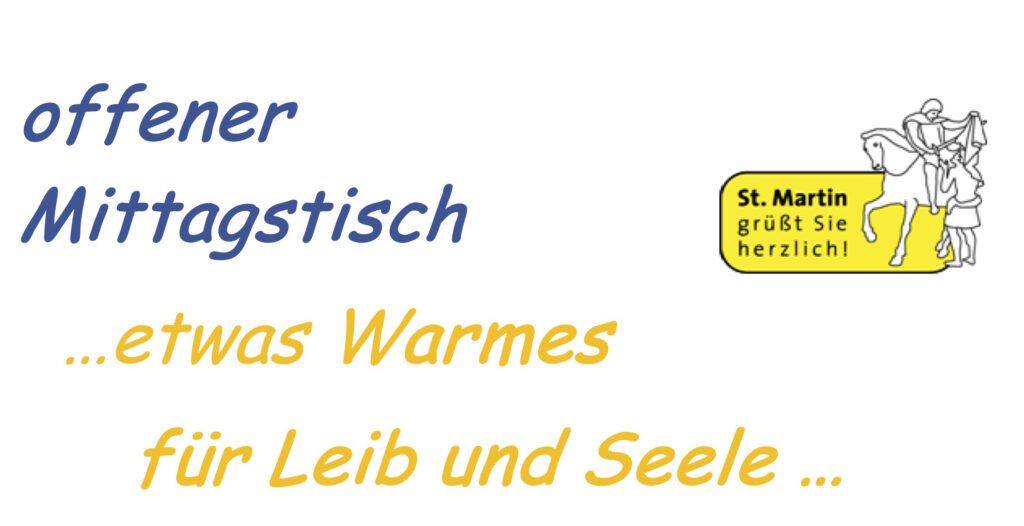 Aulendorf – Nun ist es wieder so weit, ab dem 17. Oktober bis Ende März nächsten Jahres lädt die Kath. Kirchengemeinde St. Martin wieder zum offenen Mittagstisch ein. Der offene Mittagstisch wird jeweils donnerstags von 12.00 bis 13.00 Uhr angeboten.