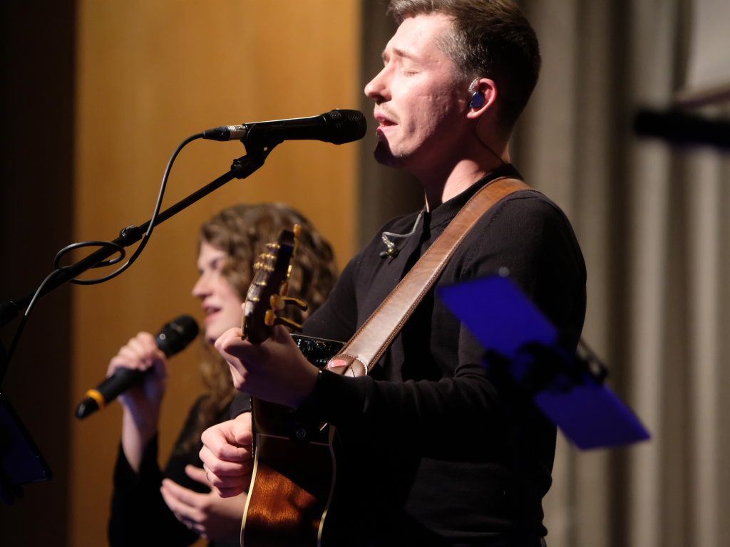 Bad Wurzach – Im Rahmen seiner „Ein Stück näher Tour“ machte der christliche Liedermacher Miroslav Chrobak gemeinsam mit seiner Band auf Einladung der Freien Christengemeinde Leutkirch und deren Pastor Daniel Brown auch Station auf der Bühne der Kulturschmiede Kurhaus.